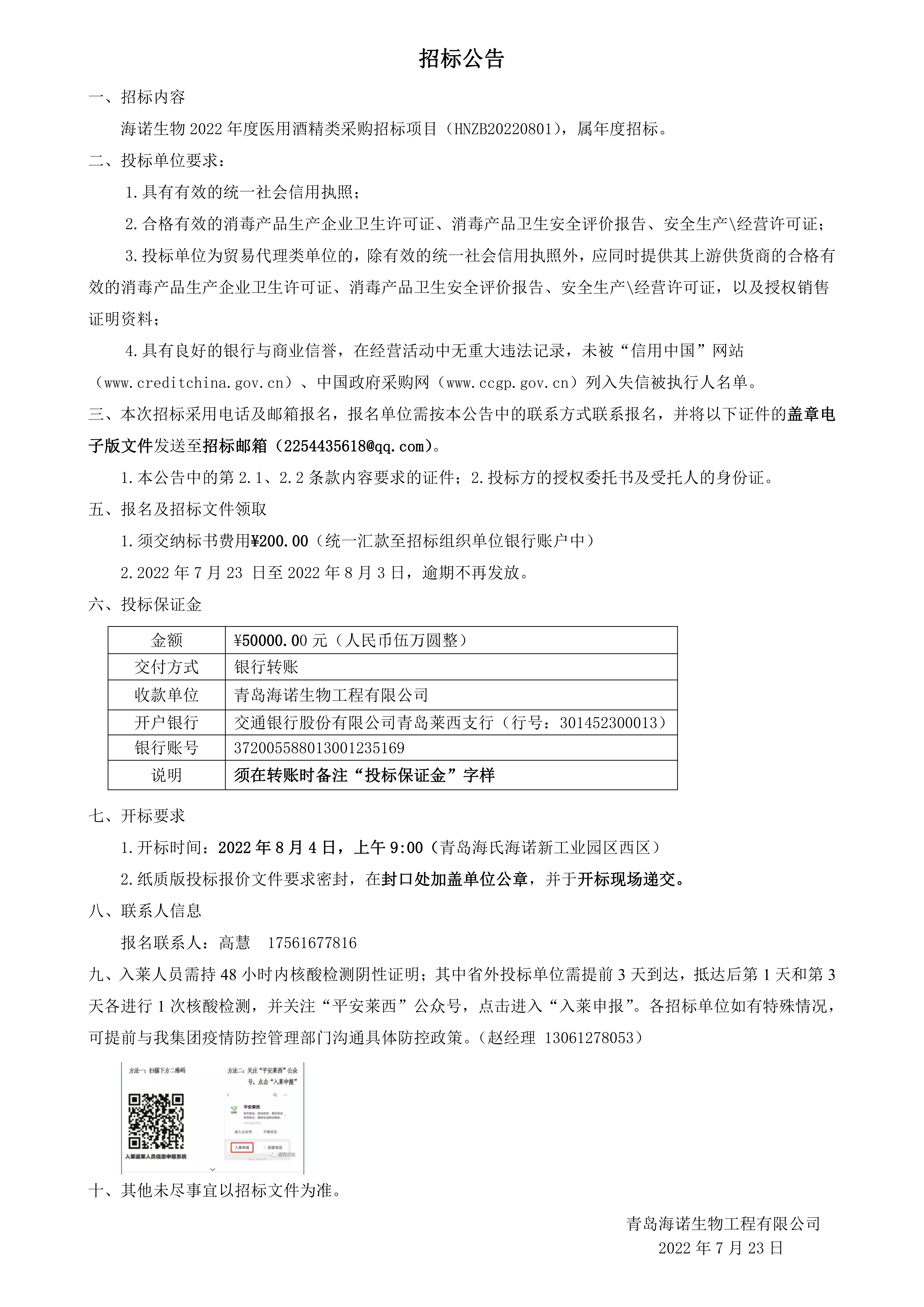 2022年度尊龙凯时集团酒精类采购招标公告